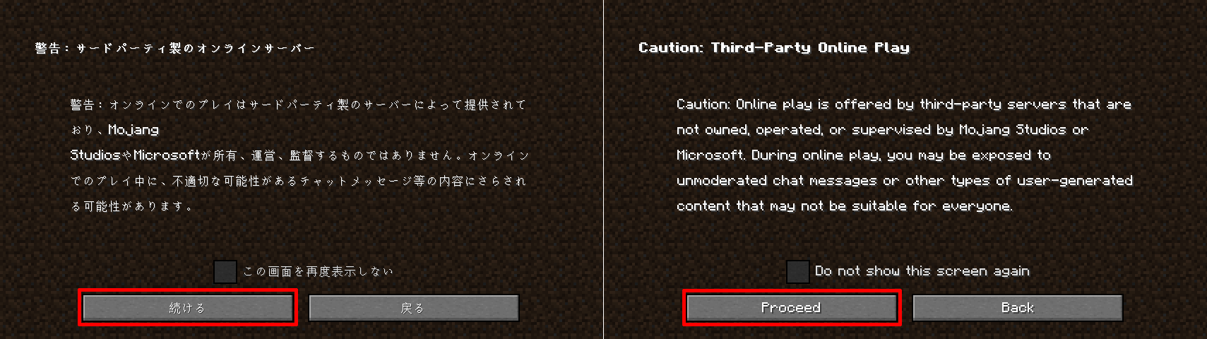 以下ではバニラ状態における日本語・英語表示の場合を示します。)