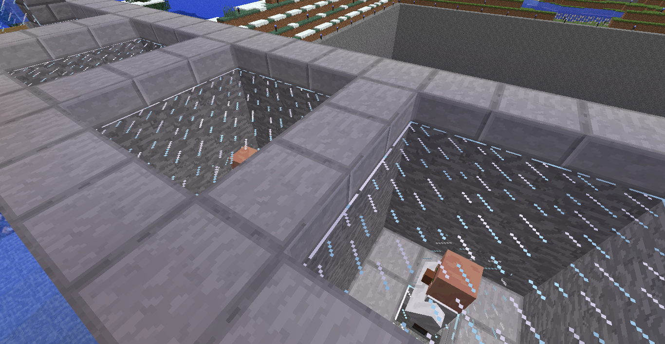 村人格納器 ドア24個,村人10体で現状なら増殖して重なることはありません