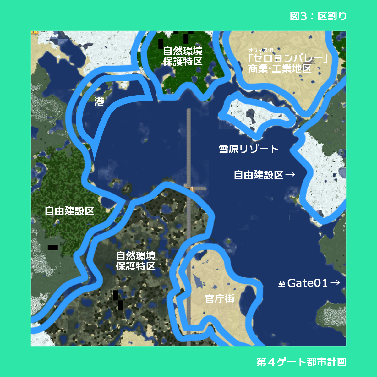 3. 本ゲート都市北東側に「雪原リゾート」を設ける。