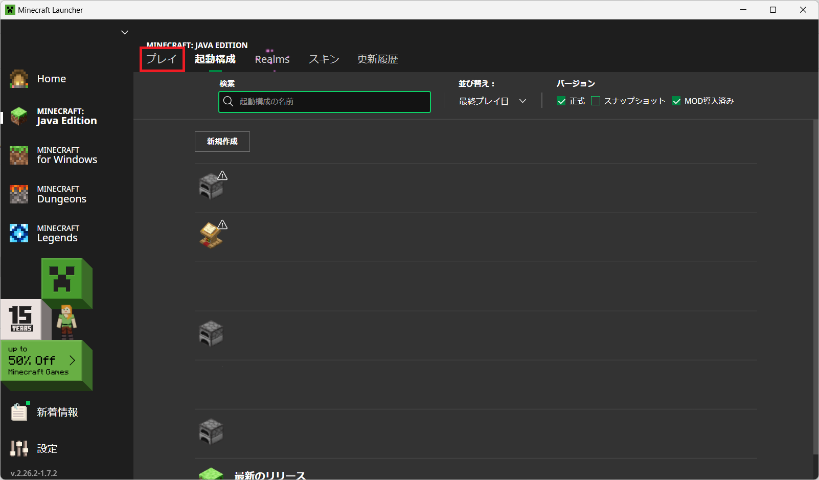 Minecraftバージョンの変更方法