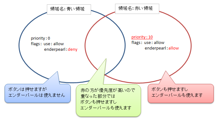| 例:/region setpriority 赤い領域 10 ←「赤い領域」のpriorityを10にする | |