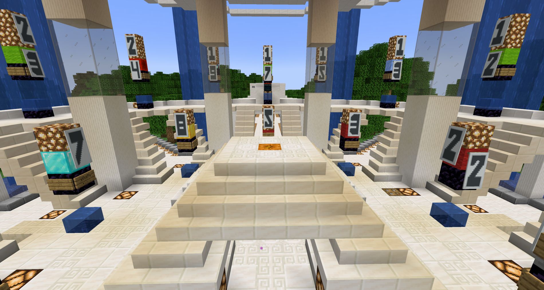home01スポーン地点(しいたけビルという建物の周囲の街)と、全12個の遠方ゲートが用意されています。