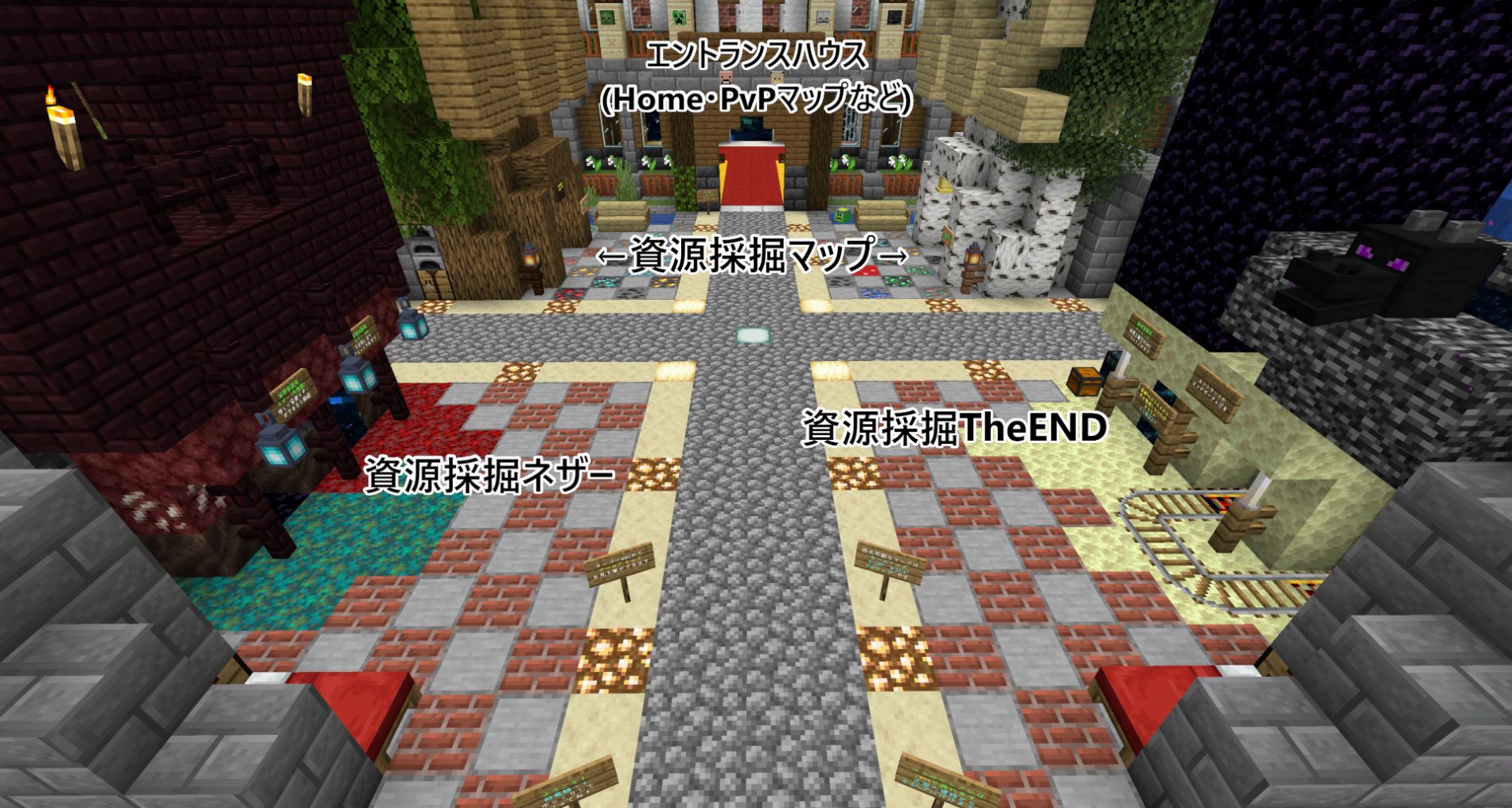 また、毎週土曜日20時からは資源マップが再生成され、スポーン周辺の設営作業が行われます。