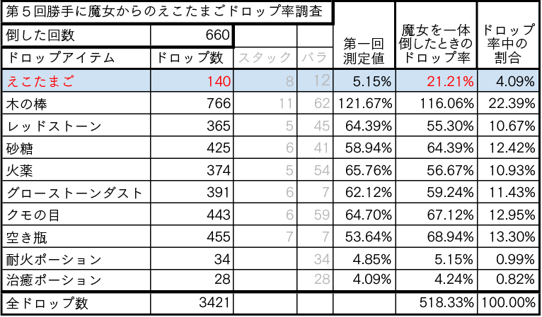 第5回 魔女からのえこたまごドロップ率調査