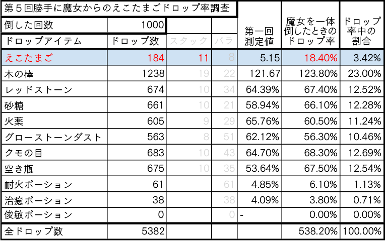 第5回 魔女からのえこたまごドロップ率調査